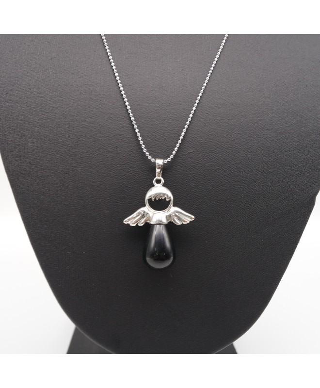 Black Agate Fairy Tale Angel Wings Love Gift Pendant Necklace