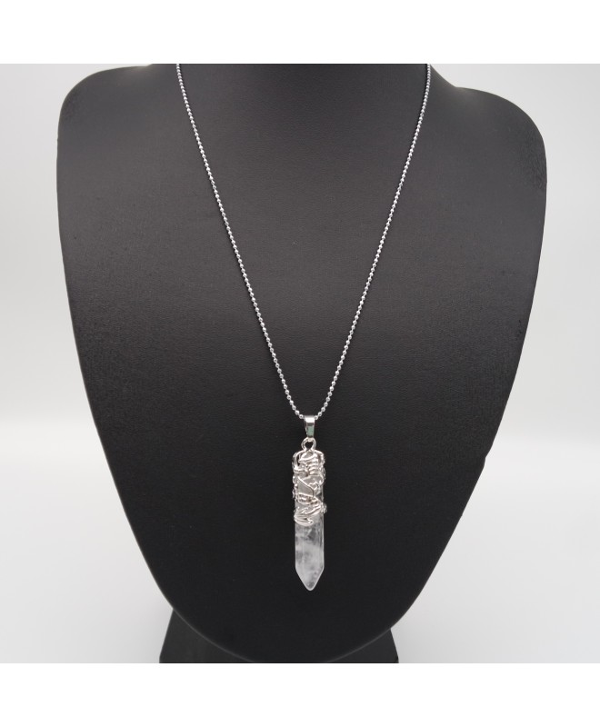 White Crystal Tribal Totem Dragon Shaped Natural Stone Pendant Necklace