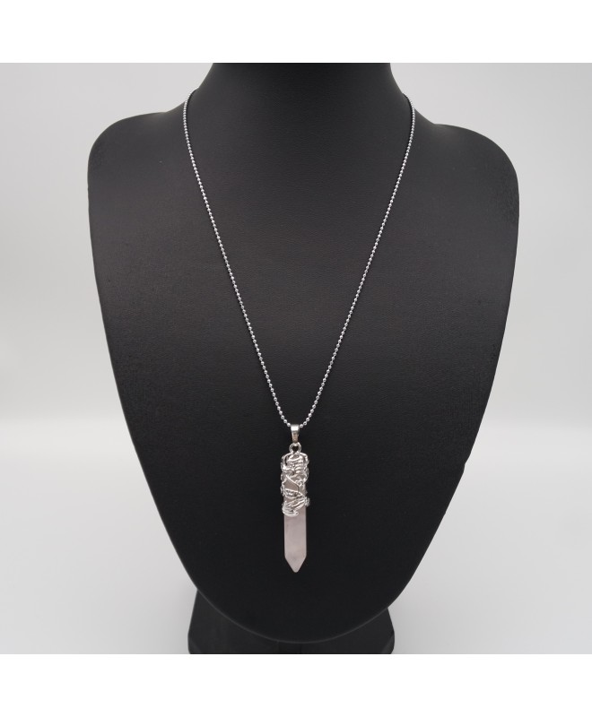 Pink Crystal Tribal Totem Dragon Shaped Natural Stone Pendant Necklace
