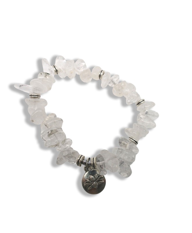 Natural White Crystal Polished Stone Ancient Anemone Pendant Bracelet